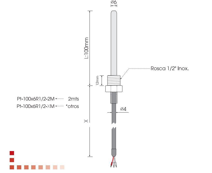 Remberg PT-100x6R1/2-2M, Pt100. racord 1/2", senzor temperatura, PT100, 3 fire, Ø6 x 100mm, cablu silicon